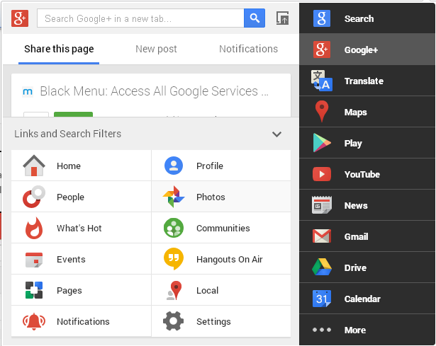 تسهل علينا تصفح فمن خلالها نصل على جميع خدمات غوغل و تسمى القائمة السوداء black menu