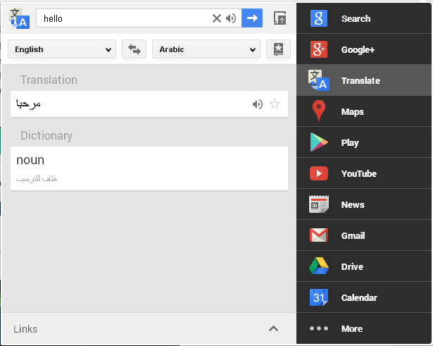 و في أسفل القائمة هناك لتوسيع الروابط Links and Search Filters والذي يتضمن وصلات خارجية جوجل، محلي، صفحات، صور، ألعاب، وأكثر من ذلك.