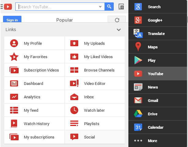 القائمة قابلة للتوسيع في الجزء السفلي لديه الكثير من الروابط يوتيوب جدا التي تجعل من السهل للغاية لنصل الى حيث تريد أن تذهب. حتى قد تجد نفسك باستخدام هذه ليوتيوب أكثر من موقع يوتيوب نفسه.